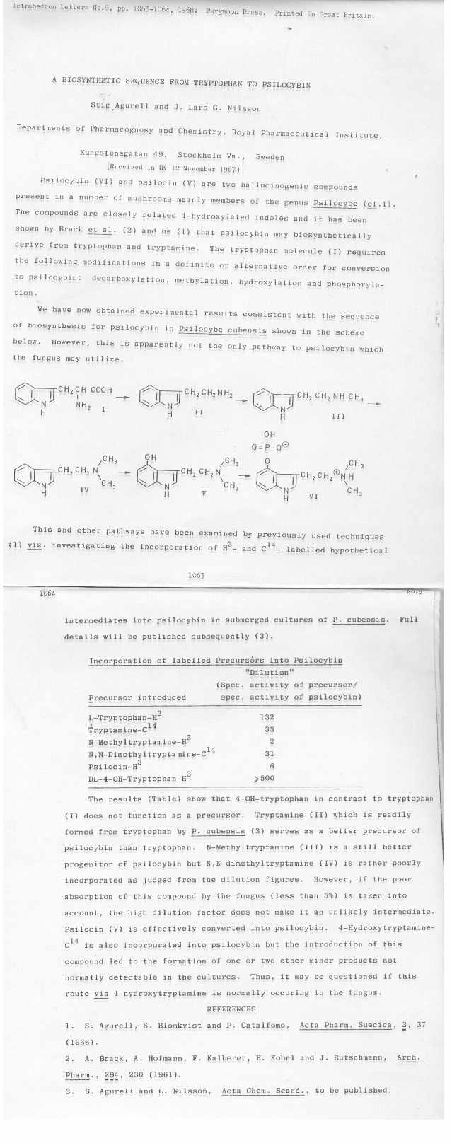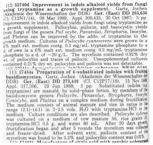 Wenn ich es nicht verbummel Stell ich hier mal den Artikel von Jochen Gartz rein in dem er seine Pilze dazu bringt aus irgendwelchen Tryptaminen neue zu metabolisieren.