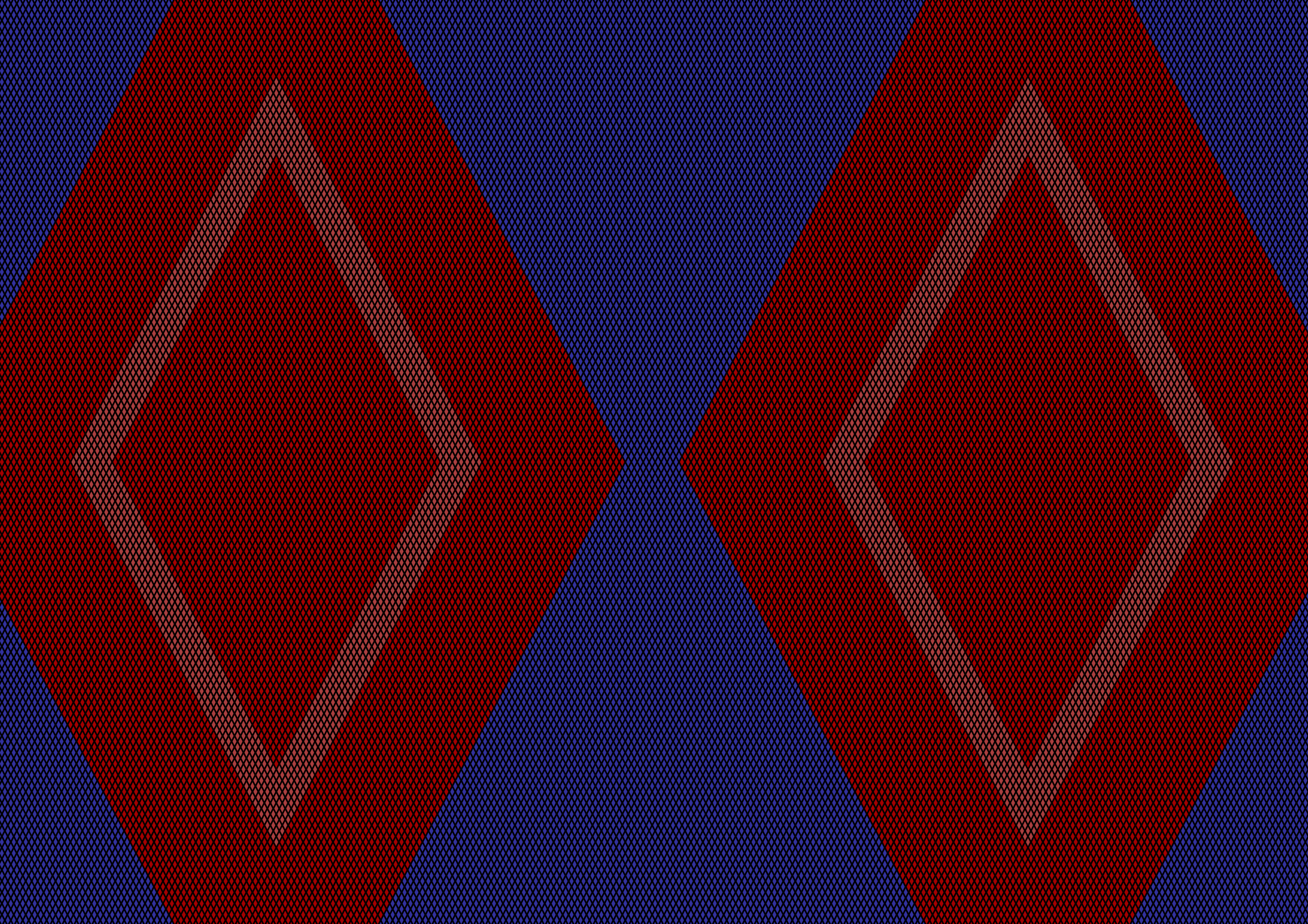 Dieses Bild illustrierte ich nach dieser Erfahrung. (und ist der Grund für die größere Verzögerung bis zu diesem Erfahrungsbericht) Die wellenartigen Farbwechsel gingen von den beiden, an ein Augenpaar erinnernden großen, hellen Kristallformen aus. Hier ist ein Farbwechsel von Blau auf Rot zu sehen. Er kam auch von Blau auf Gelb vor, dann wieder von Gelb auf Blau und anschließend von Blau auf Rot. Stets war das Bild nach einem Farbwechsel einige Momente lang komplett in einer Farbe mit den beiden großen, kristallförmigen, helleren Bereichen zu erkennen, die mich aber erst zurück in der Nüchternheit an Augen erinnerten. Diese beiden großen Kristalle waren während dieser Phase die ganze Zeit über präsent und stets heller als ihre Umgebung.